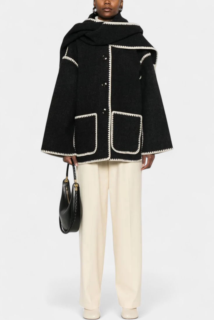 Pauline | Abrigo de Corte Suelto con Bufanda de Flecos Incorporada