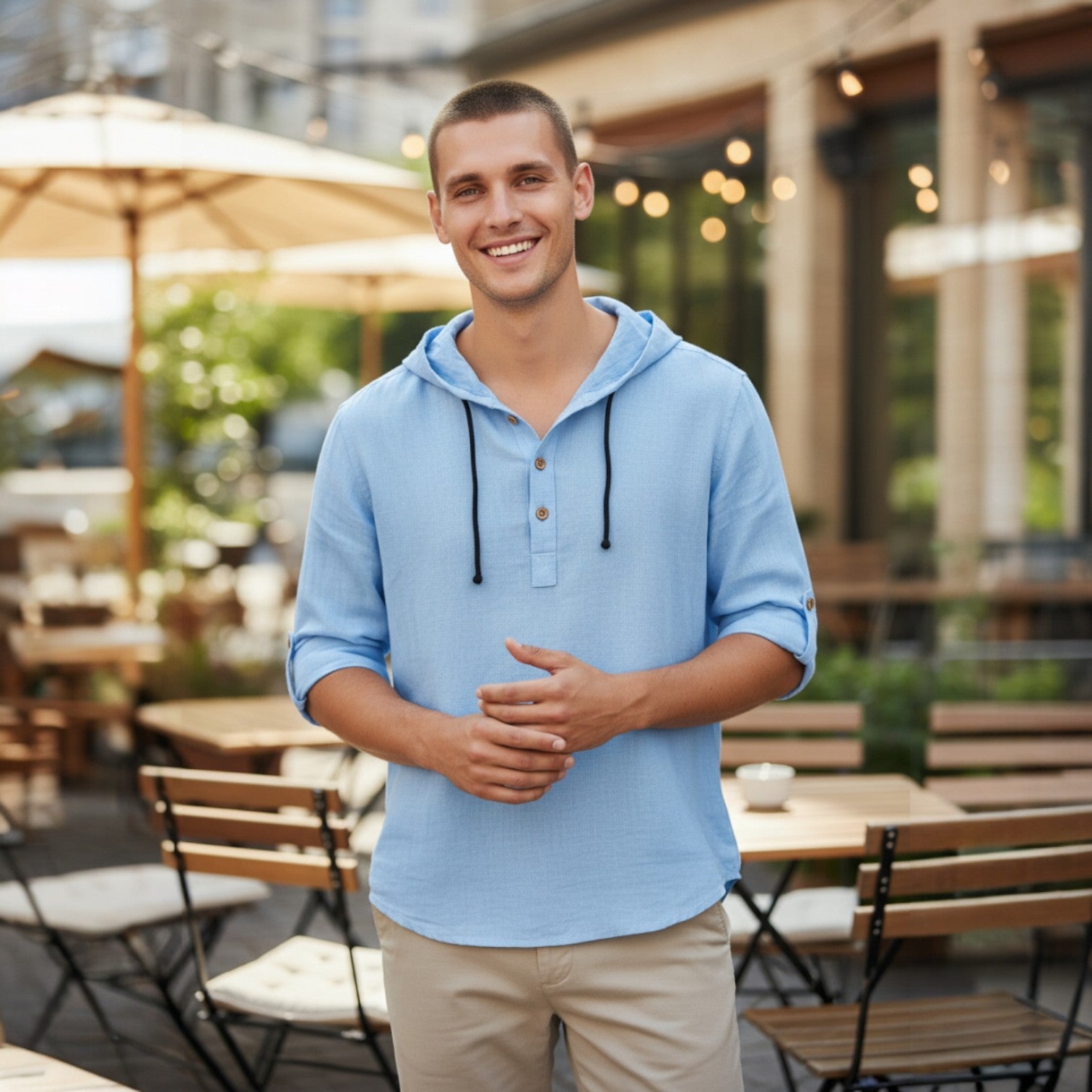 Imagina vestir una camisa que combina la elegancia del lino con un diseño moderno y funcional. Con Javier™, disfrutas de la suavidad de un tejido 100% natural que acaricia tu piel y te acompaña tanto en días dinámicos como en momentos de relax. Su capucha con cordón ajustable añade un detalle contemporáneo, perfecto para quienes buscan estilo y comodidad sin esfuerzo.